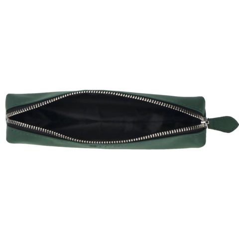 Schüttepennal PU-Leder, mit Zippverschluss, in schwarz & olivgrün